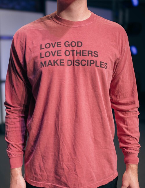 All options will have "Love God, Love Others, Make Disciples" in white on the front and the WRBC Logo on the back.